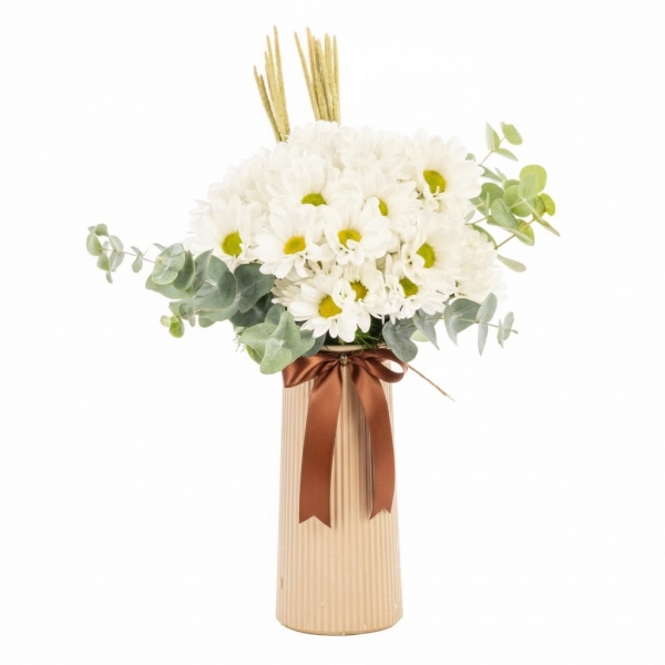 konya çiçek , konya çiçek gönder , meram çiçek gönder , karatay çiçek gönder , selçuklu çiçek gönder , bej vazoda papatya , papatya aranjman