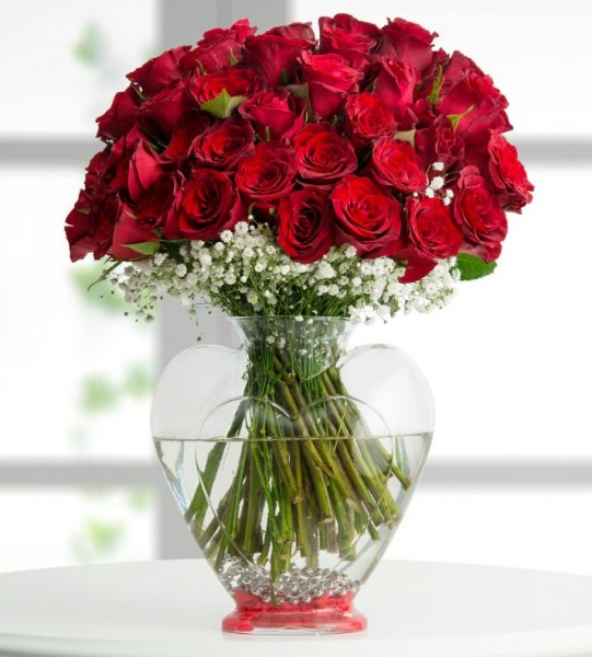 Kalp Vazoda 30 Kırmızı Gül