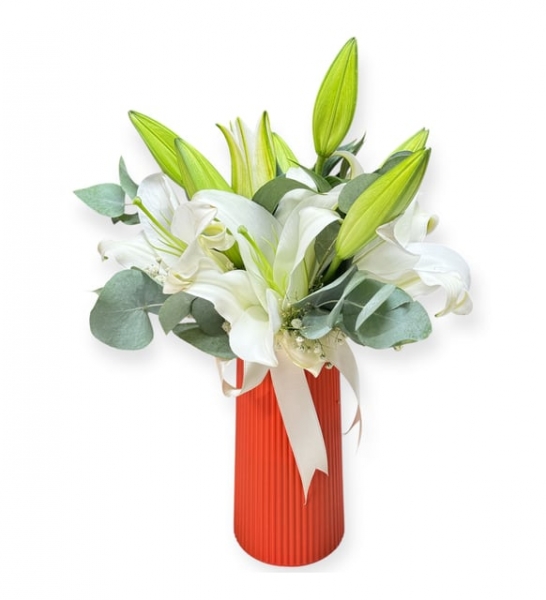 Lilyum , Vazoda Lilyum, Turuncu Vazoda Beyaz Lilyum , Konya Çiçek , Konya Çiçekçi , Konya Çiçek Gönder
